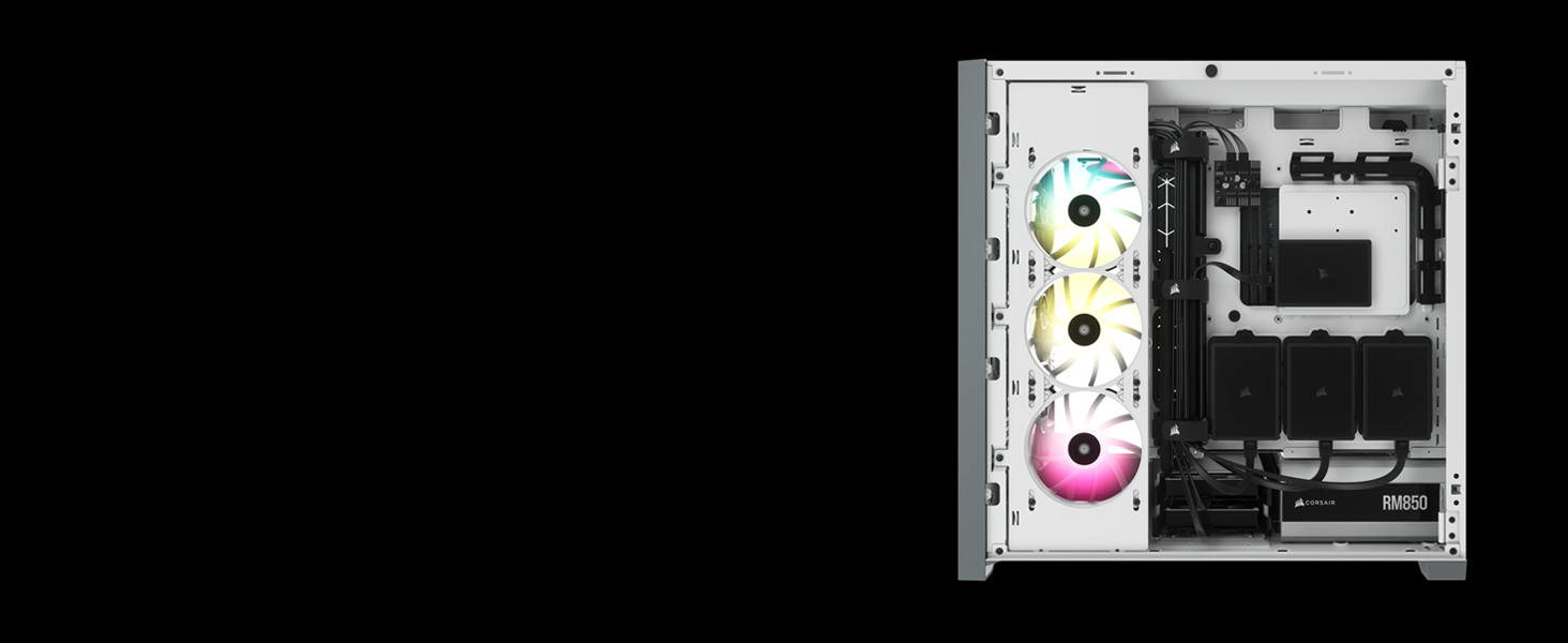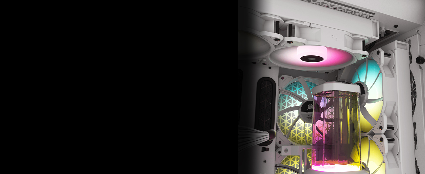 Equipped with two CORSAIR AirGuide 120mm fans featuring anti-vortex vanes to concentrate airflow and enhance cooling.
