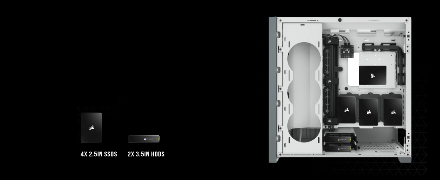This case is excellent for airflow no question there – I have a 9700k and 3090 in there and along with my fans and Noctua cooler nothing gets above 70 in gaming. Building in this is relatively easy, HOWEVER – the drive cage in the bottom along with PSU makes it very difficult to fit (with cables) and the cage you need a tiny hand to then secure the harddrive cage to the “floor” of the case. I dont have tiny hands so mine is loose, this also means that you can’t use the scoop attachment for the front lower portion of the case because you are having to bring the cage as far forward as possible. Cable management is easy other than that and build quality along with attention to detail is brilliant, would recommend. Wish corsair would find a better solution for the basement and HDD cage however. 2.5 inches drives fit in the back like most other cases with no issues