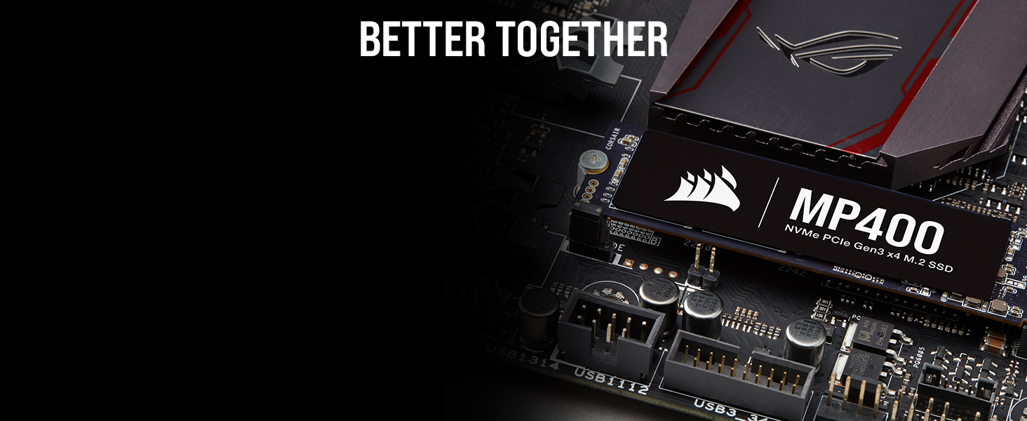 The CORSAIR MP400 Gen3 PCIe x4 NVMe M.2 SSD delivers up to 3,400MB/s sequential read and up to 3,000MB/s sequential write speeds. (Performance and endurance vary by capacity)