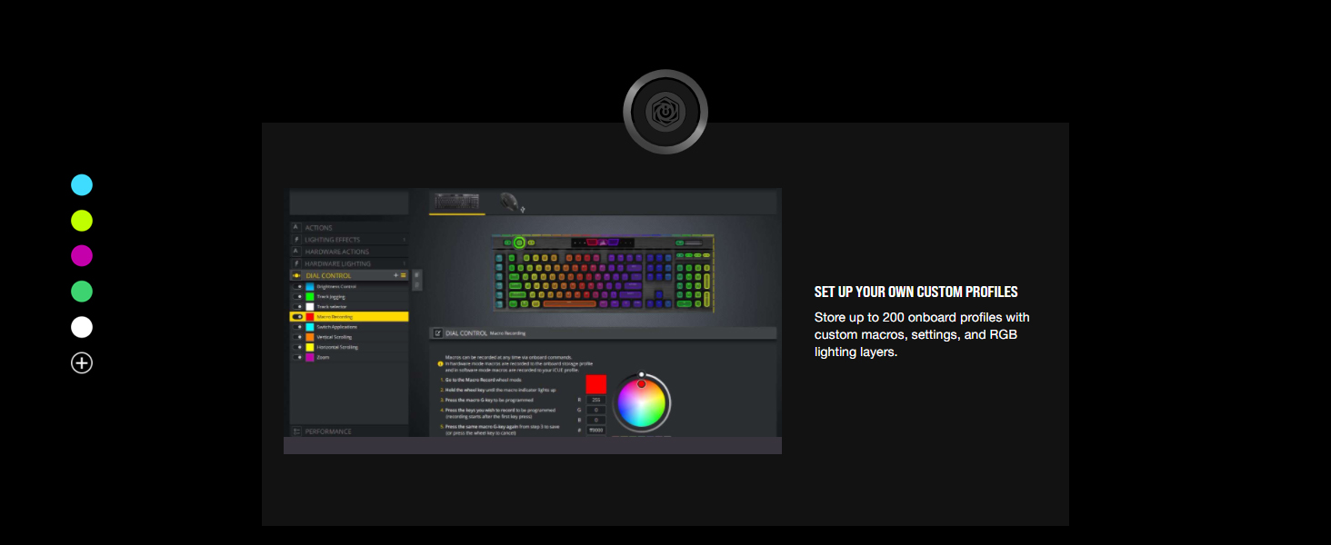 It runs two configurations, iCUE running or not. I prefer the offline mode as it preserves settings between software, and I don’t like the idea of the keyboard depending on a large software suite. Thankfully the macros and lighting profiles I created work without the software running, if you close iCUE the keyboard reverts to it’s on-board memory. Takes a while to learn all of these settings but it works.