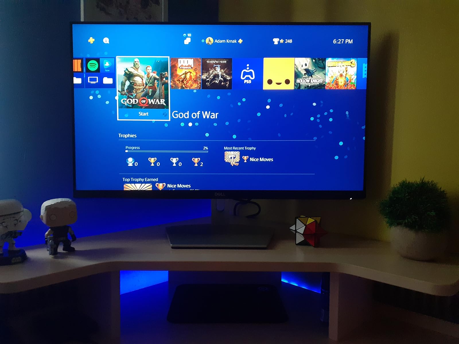 It also is a good-looking monitor and has built in speakers, not that he uses those when he’s playing, but I thought it was a good feature.