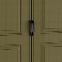 The only weakness in this shed is how you lock the door, through two plastic loops in the plastic handles. I have purchased separately a metal padlock hasp for around 10 that will be bolted through the door to a metal plate for around 3 each to overcome my issue of security with this. I may even change the handles if i can find some different ones with the same span. Aside from the issues, its a great shed and looks very nice in the garden!