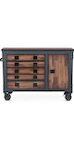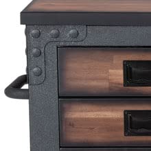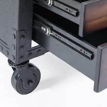 Built with solid rubberwood and powder-coated steel | Side Latch handle | Full extension of 45 Kg rated ball bearing drawer slides | Heavy duty rubber casters, 2x swivel casters with brakes and 2x rigid casters |