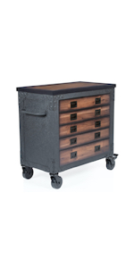 Duramax Side 5-Drawer Rolling w Tool Cabinet for Home/Workshop, Reinforced Industrial Furniture, Vintage Look Wheel Chest Trolley, Black and Brown, Exclusive to Amazo