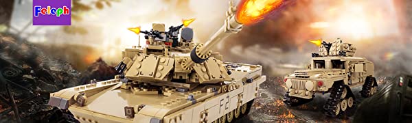 Feleph Military M1A2 Tank Model Kit with 5 Soldier Figures, Army WW2 Tank Custom Vehicles Set 1:28, 2 in 1 Building Bricks Toys for Model Lovers