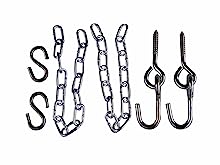 This chain hanging kit is a safe and easy way to hang your hammock from trees or wooden posts. Each item in the kit is zinc coated to withstand the elements of nature. Includes 2 eye bolts with hooks, 2 pieces of chain (with 14 links each), and 2 S-hooks.