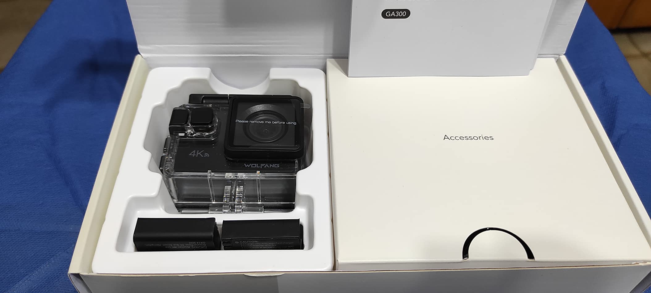 WOLFANG Action Camera 4K 60FPS 24MP GA300, WiFi EIS Touch Screen Sports Camera, 8X Zoom Waterproof Camera 40M Underwater Camera, External Mic, Remote Control 2x1350mAh Batteries and Accessories Ki