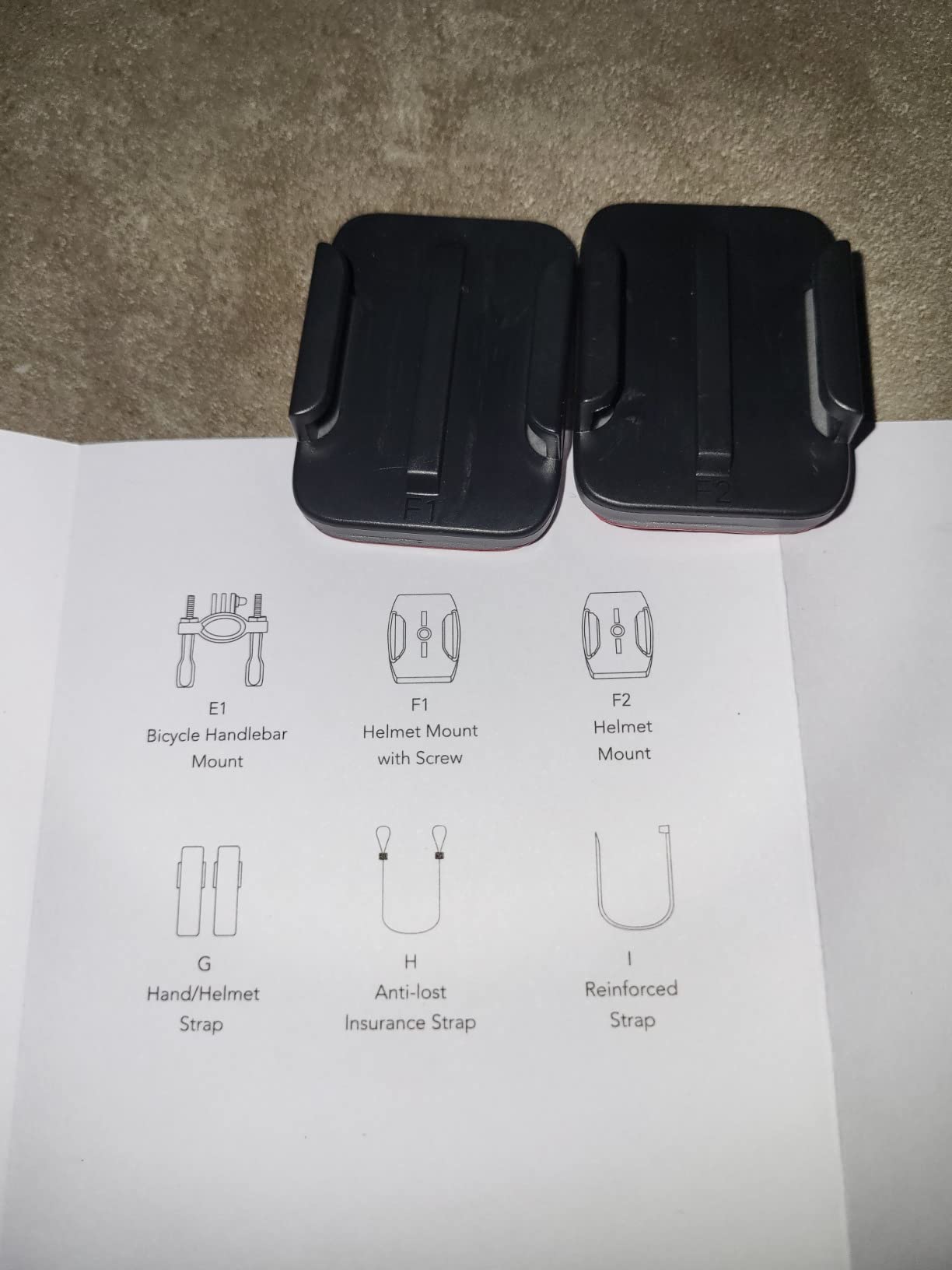 Faltan 1 hand/helmet strap, 1 anti-lost insurance strap, 1 reinforced strap.