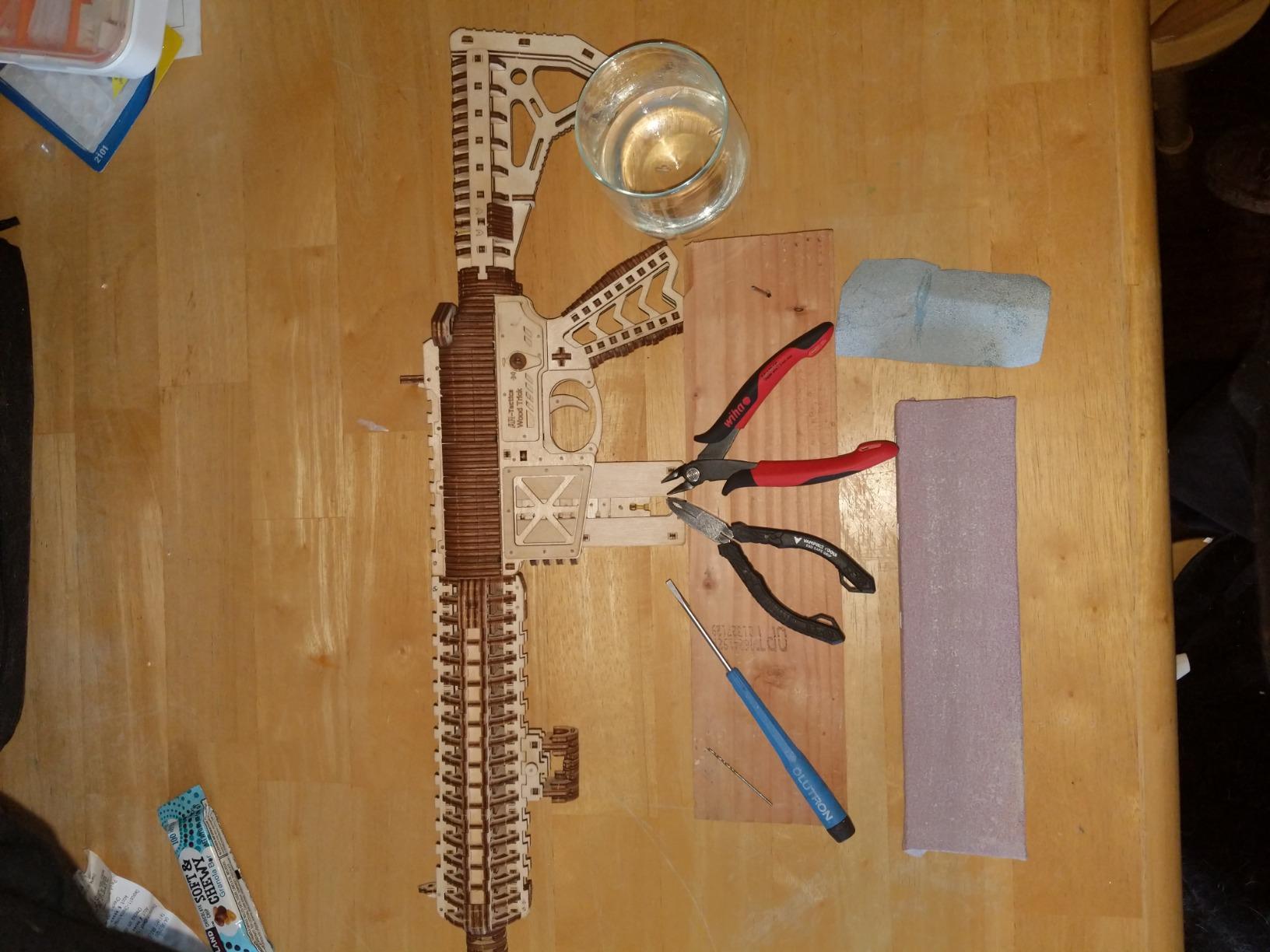 Was skeptical at first, some reviews made it out like you need a full workshop, you do NOT, im a beginner when it comes to wood building, and was worried it would be too hard for me, luckily the instructions are super clear and easy to understand, you may need more sandpaper and wax but apart from that everything is in the kit, I was expecting to struggle with this but surprisingly I didn’t! It was super fun to build and it actually works, so I’m very happy with the end product, the attention to detail is really cool aswell, so I definitely recommend this to any one who’s into building wood mechanics
