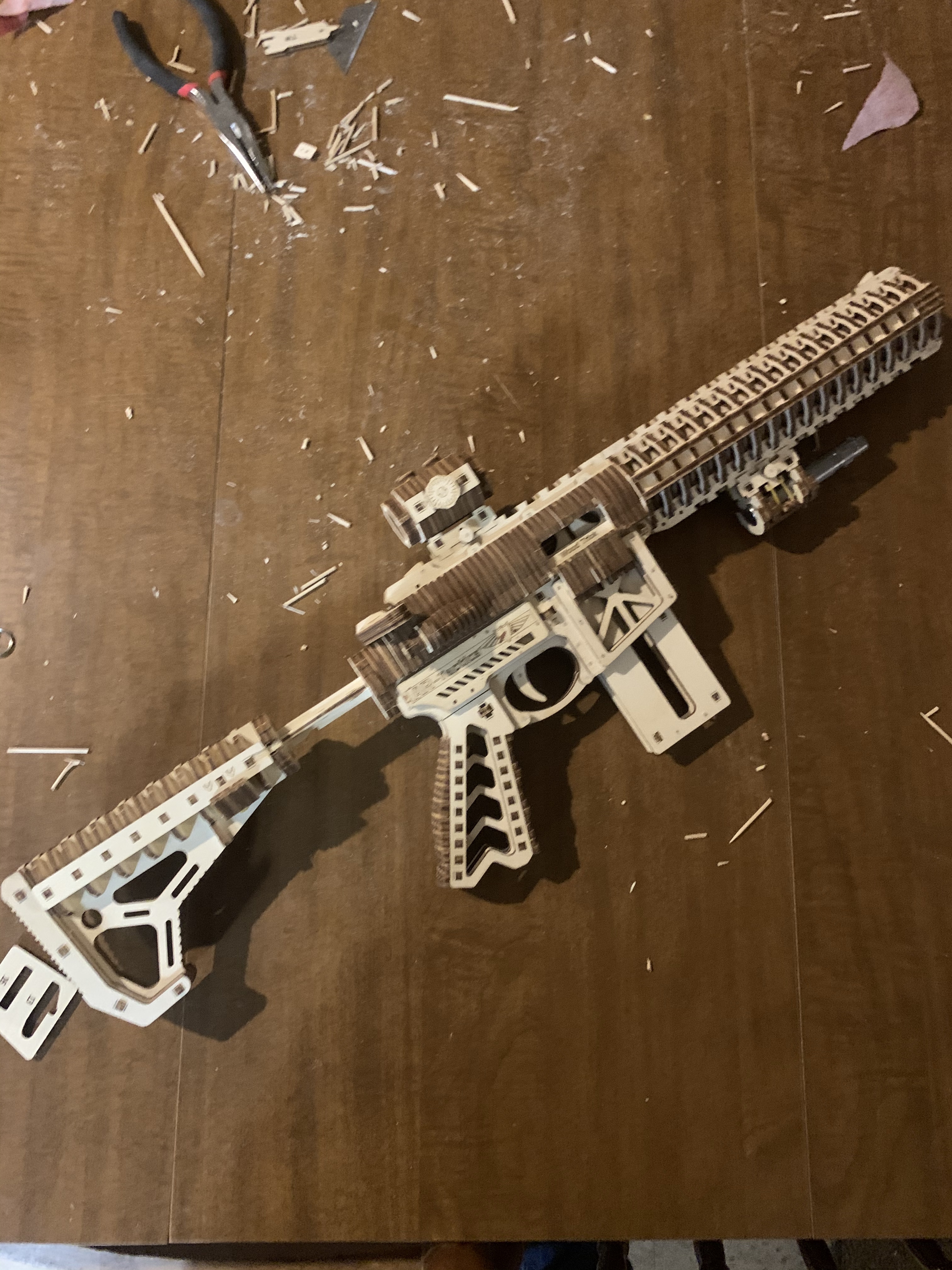 Building the gun itself is work-some and hard as your hands tend to ache after pushing the wood pieces together. Many complain about this aspect so if you are not prepared for that than do not buy this product and complain later. But if you’re like me and enjoy working towards a nice product in the end, than give this gun a go.