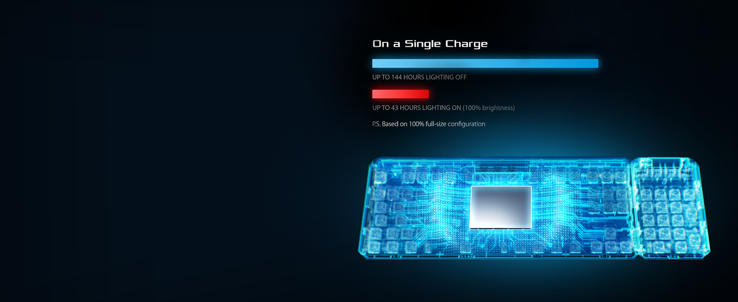 A 4000 mAh battery and energy-efficient design give you up to 43 hours of nonstop gaming in wireless mode on a single charge, even with RGB lighting on.
