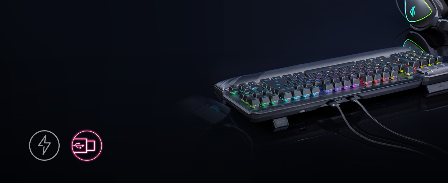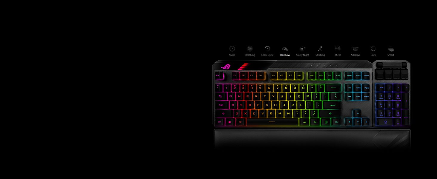 Older mobos might not be able to natively handle it due to c-c connection. Detachable numpad is more a gimmick than anything else if you were to use the wrist rest as the wrist rest is full size. Asus software isn’t that great but haven’t had too much of an issue setting up any macros/lighting layouts. Additional USB built into keyboard carries enough power to charge things like headsets and mobile phones.