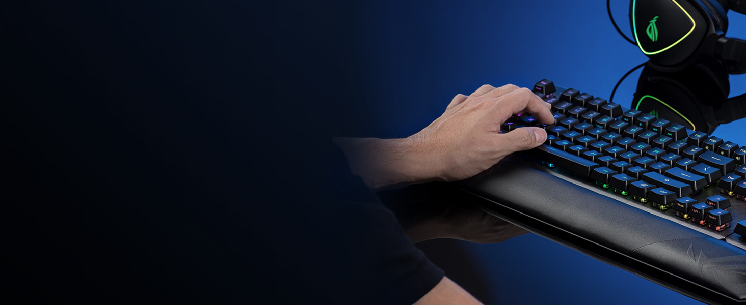 ROG PBT Doubleshot Keycaps provide a unique and premium feel and long-lasting durability. The double-shot molding process results in translucent keycaps* that feature seamless ROG script.