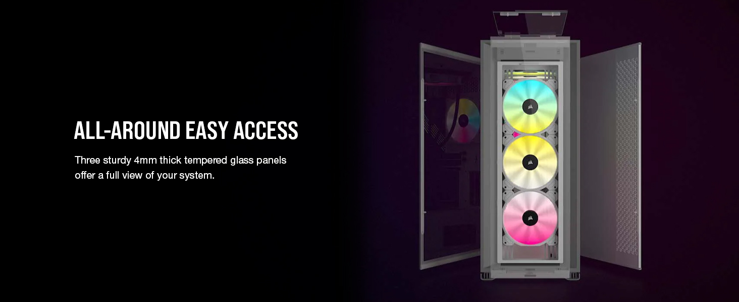Corsair iCUE 7000X RGB Full-Tower ATX PC Case (Three Tempered Glass Panels, Four Included 140mm RGB Fans, Easy Cable Management, Smart RGB and Fan Speed Control, Spacious Interior) White