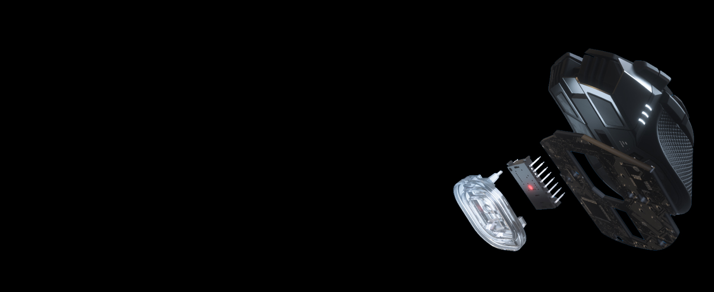A custom Pixart PMW3391 native 18,000 DPI optical sensor offers ultra-accurate tracking, adjustable in 1 DPI resolution steps for total sensitivity customization.