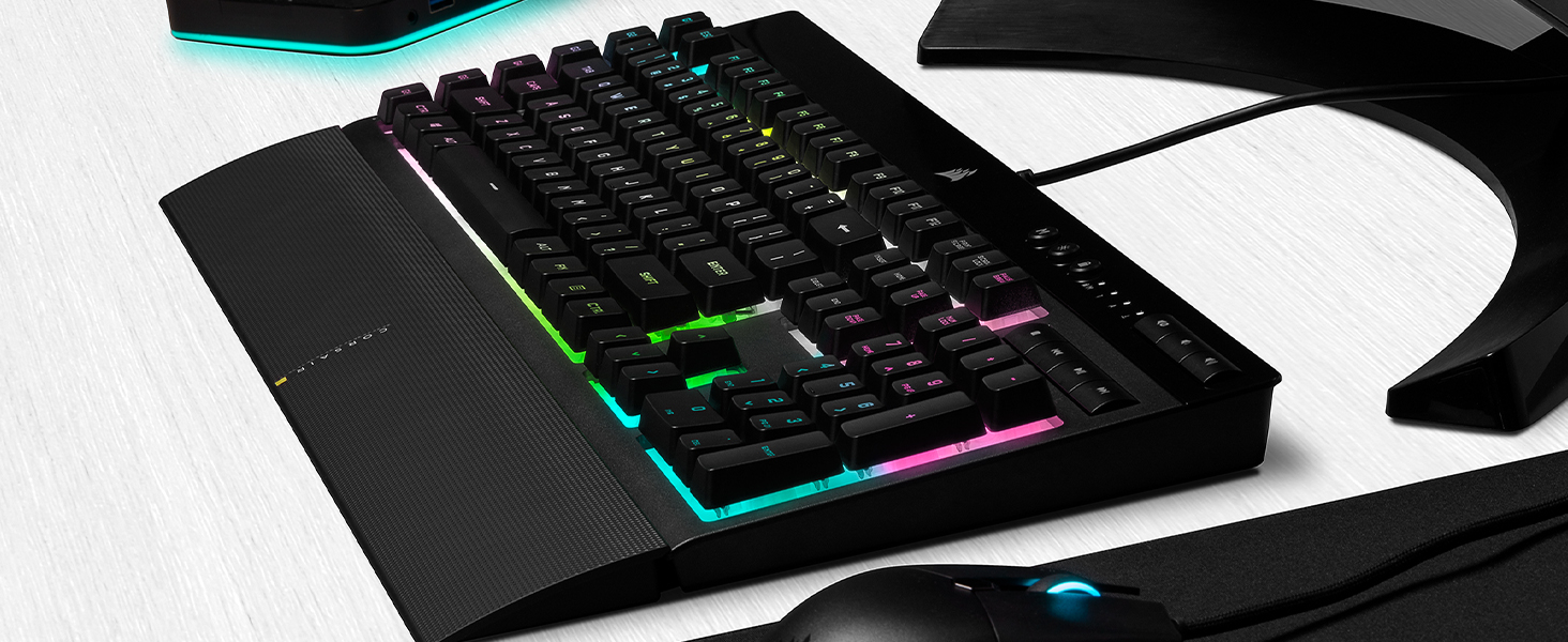 – The keyboard offers RGB customisability that can be synced with the iCue system giving you the option to have profiles for the RGB colours