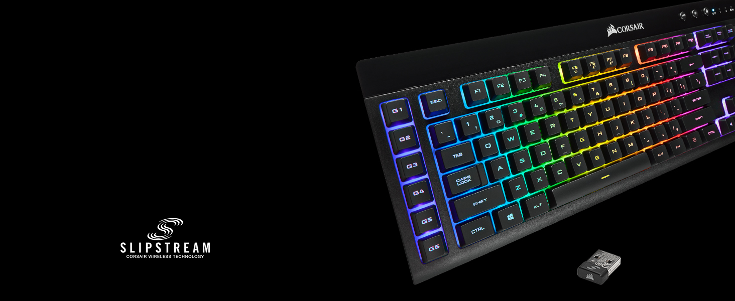 Corsair K57 RGB Wireless Gaming Keyboard (Dynamic Backlit RGB LED, Quiet and Responsive, Six Programmable Macro Keys, Up to 175 Hours Battery Life with Sub 1 ms Slipstream Wireless Technology), Black