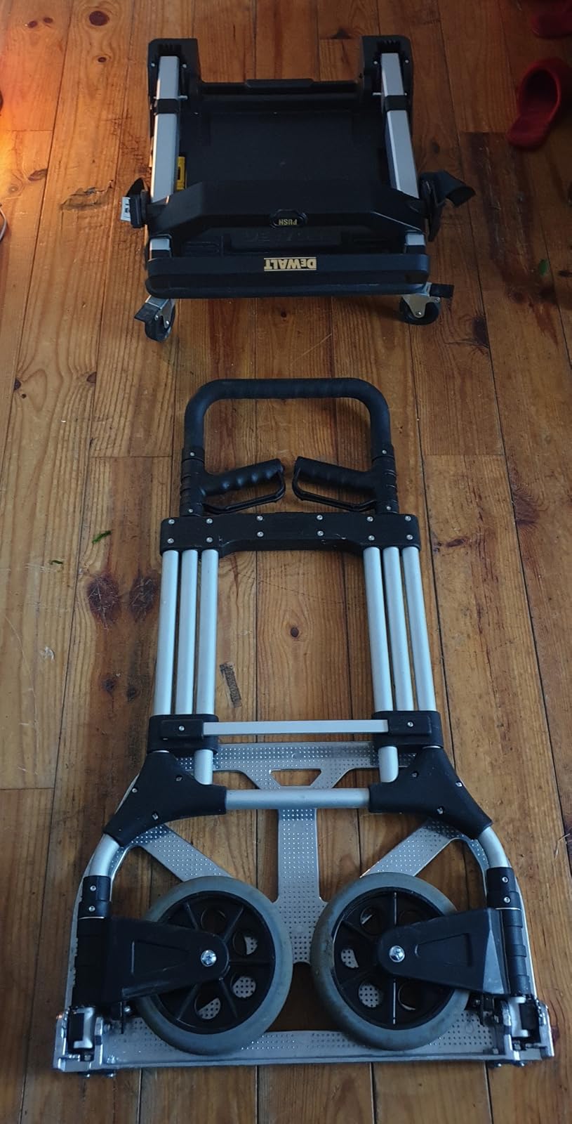 Se utilizzate il sistema DeWalt T-Stack per trasportare i vostri attrezzi allora questo carrello fa al caso vostro. molto robusto, con le ruote grandi va anche su terreni accidentati e riesce a trasportare senza problemi 4/5 valige, tutte ben fissate con gli agganci del sistema T-Stack.