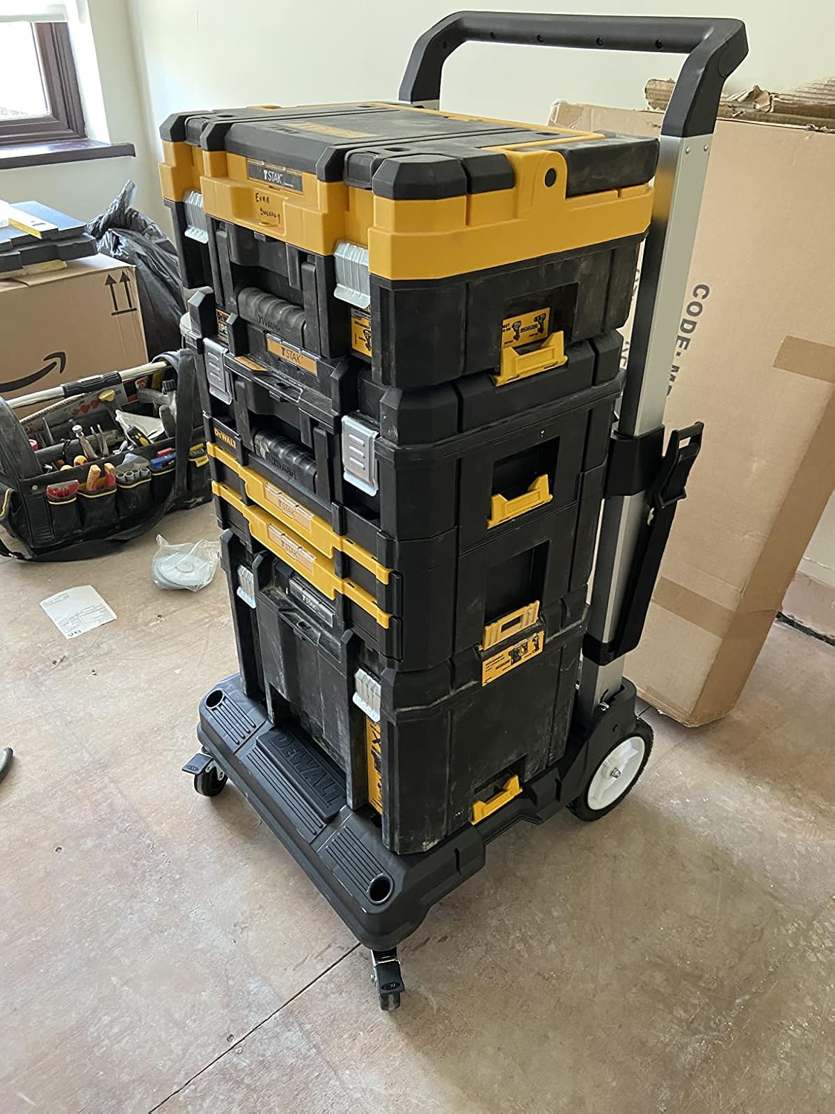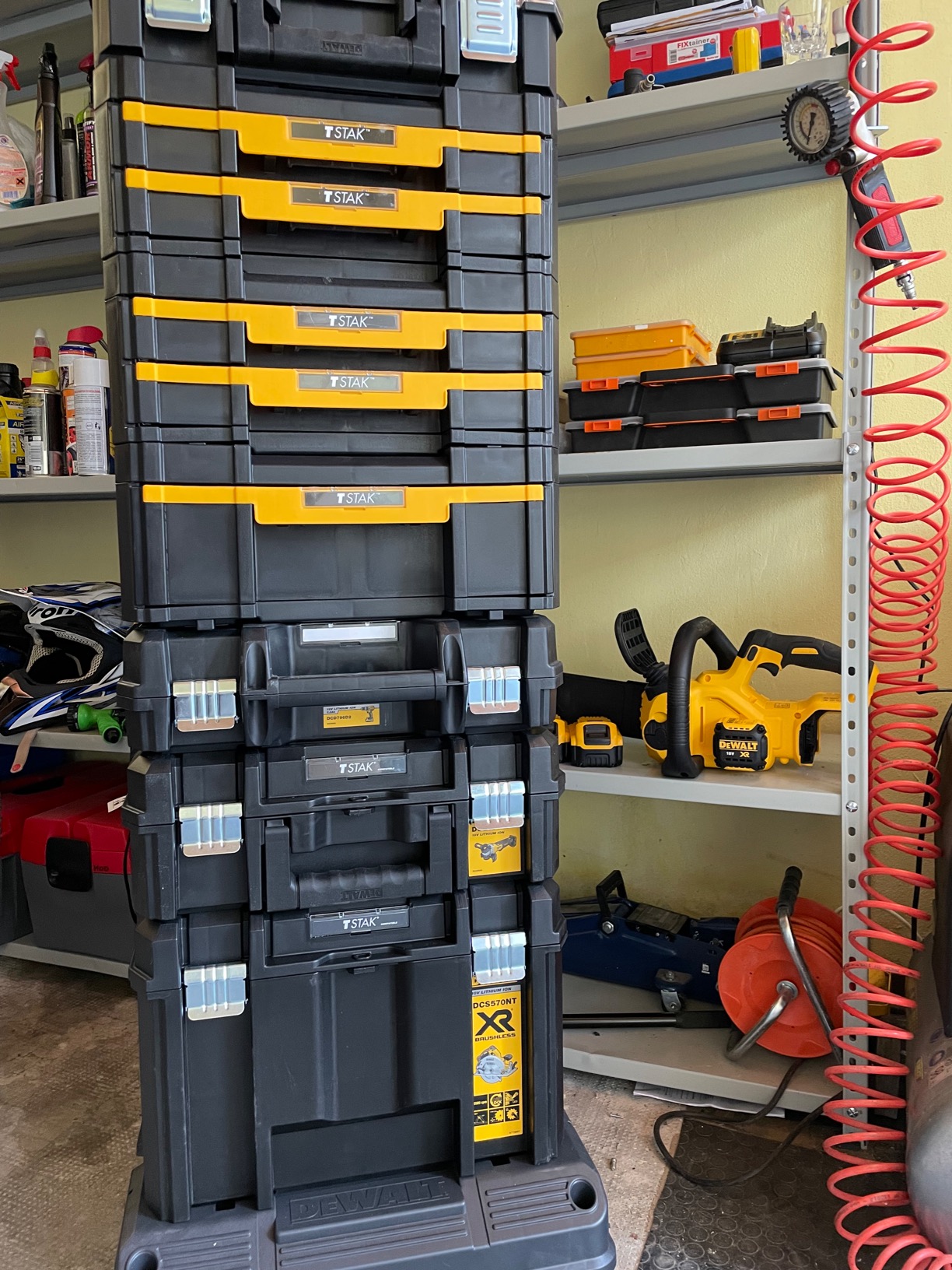 Bought for my husband who is delighted. He has filled it up with his stacking dewalt stuff and its perfect. It is easily moved around and n Ames light work of taking your tools around. All click perfectly into place and it appears to be sturdy.