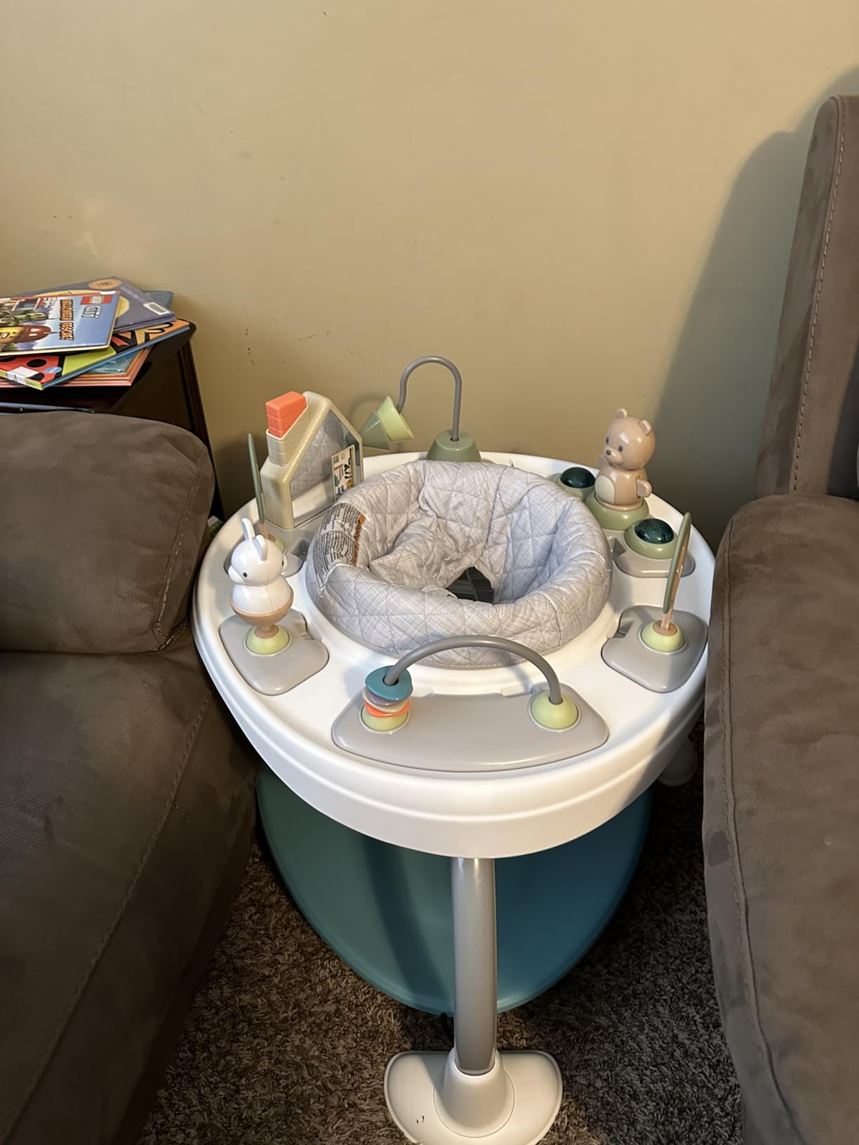 My son loves this jumper. It has plenty of activities for him to enjoy. I wanted something that didn’t have a lot of color and this one was cute. The seat comes off easily to clean when he has blowouts.