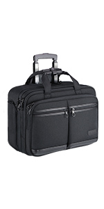 This is the BOMB as far as I am concerned. I had been using a luggage cart which was clumsy at best. This allows a larger capacity without bungee cords. There ard tons of pockets and compartments and the wheels are smooth and durable. The case keeps its shape better than my old soft sided shoulder bag.. Buy with confidence if these things are important to you!