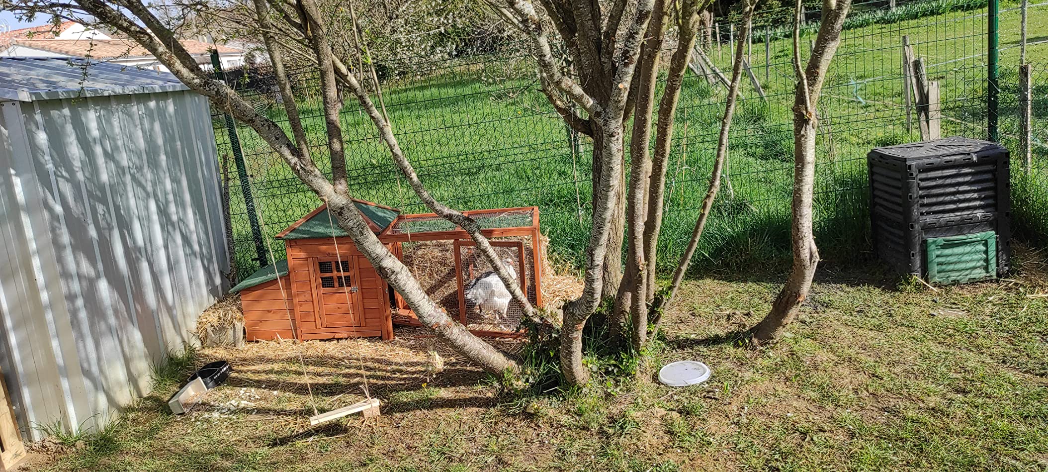 It’s not large so two hens maximum, and the ‘run’ is definitely minimal, but if they have the freedom to run around during the day that’s not too bad. Here, I put some plywood over the run’s roof so ‘The Colonel’ (the rooster’s name) has some rain protection.
