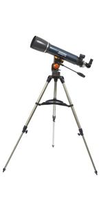 Locating celestial objects is a breeze thanks to AstroMaster’s intuitive altazimuth mount and pan handle. The telescope also features a sturdy, full-height adjustable steel tripod.