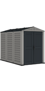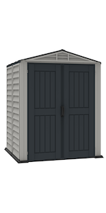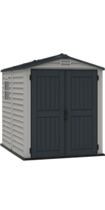 Duramax EverMore 4 x 6 ft Plastic Garden Storage Shed, Adobe & Grey, Fire Retardant & All-Weather Outdoor Storage Solution, Includes Plastic Floor, Strong Structure & Maintenance-Free Vinyl Shed
