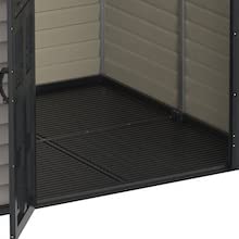Duramax StoreMax 7 x 7 PLUS Plastic Garden Shed with Heavy-Duty Plastic Floor & Fixed Window on Doors, Strong Metal Roof Structure, Fire Retardant & Maintenance-Free Storage Shed, Dark Grey & Adobe