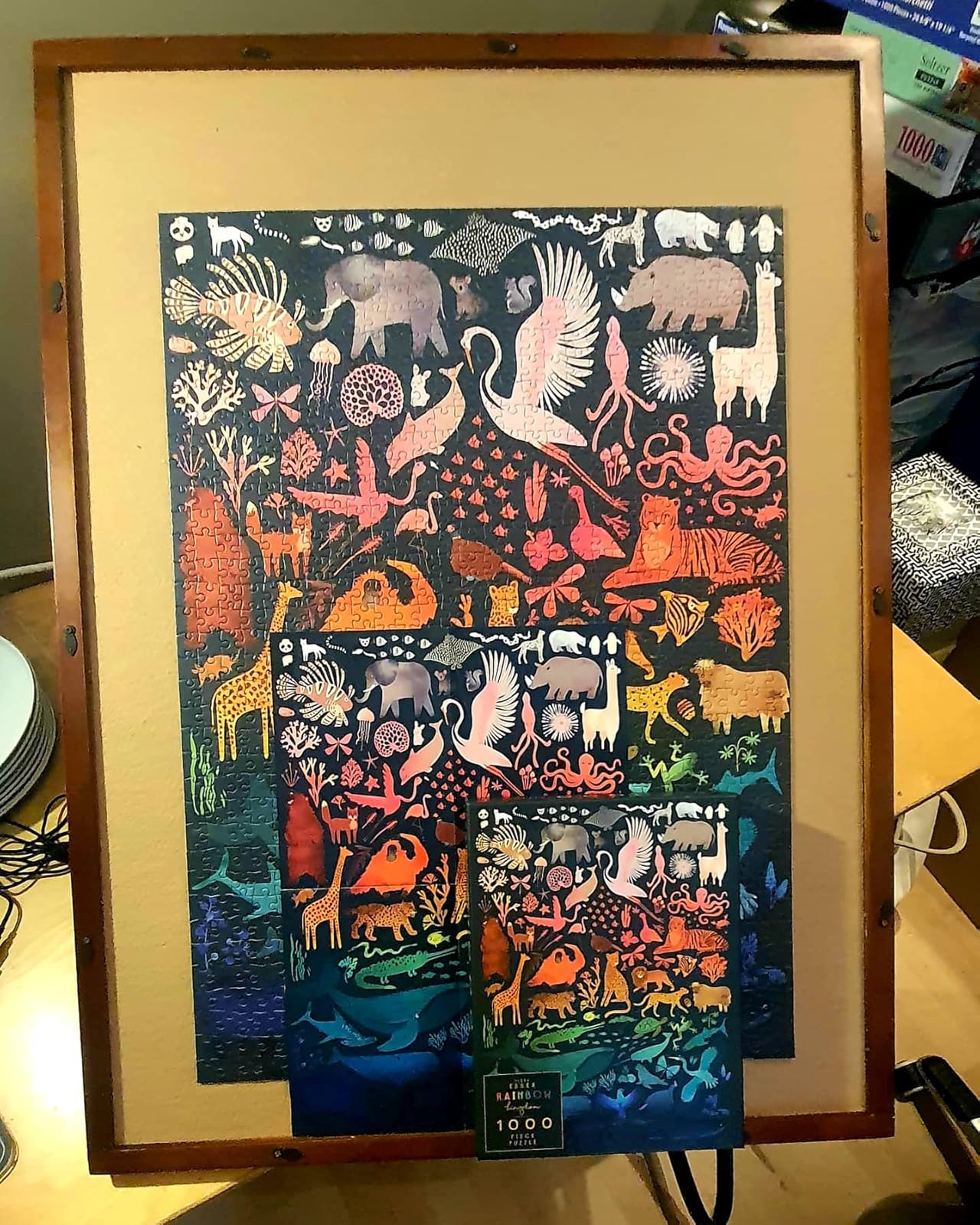 The colourful pieces & range of animals made it really fun for my 5 year old & I to piece together. The bottom deep blue being the most challenging (best completed in daylight.)