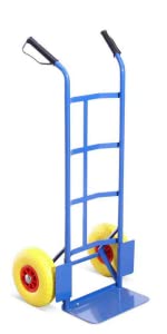 This is quite a sturdy sack truck and does the job I bought it for, moving things around the garden. It needs to be assembled before use which I found frustrating and had to wait for someone to do it for me, but was apparently quite easy. It manoeuvres easily and the fact that the wheels are solid means that they should last a long time. Unfortunately one of the handles was squashed on the bend when I unpacked it but decided that it wouldn’t impact on it’s use, it would have been such a hassle to send it back. I recommend this product.