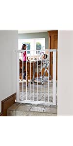 We had difficulty finding gates that fit our staircase due to the style of the bannisters but these are a great fit and do the job.