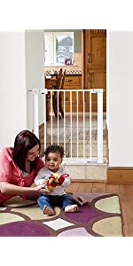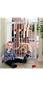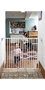 No children here but we do have 2 over exuberant (and high jumping!!!) Spaniels and soon, a German Shepherd, therefore needed something high and sturdy.this gate is so good that we bought 2!