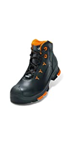 uvex 2 safety boots, S3 SRC ESD, leather work boots, black/orange