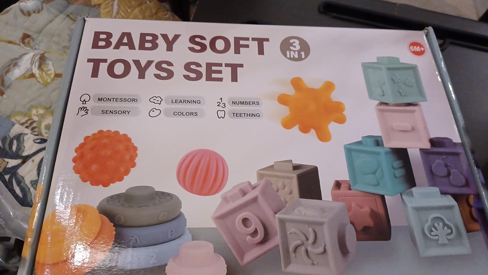 Yevohadt Impressed me with this box of baby soft toys. We’ll mainly be using them as ways to making bath time fun time but they would also be suitable for teething or just general sensory toys.