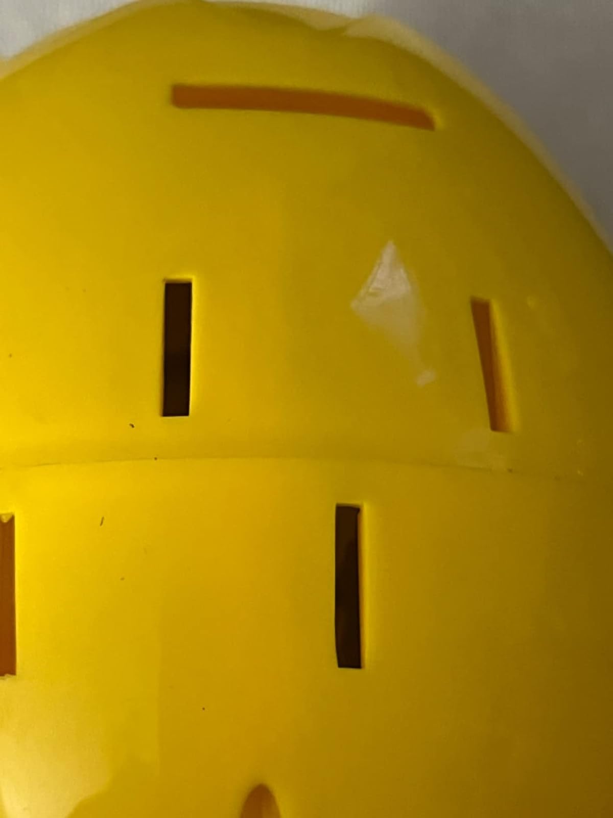 At the back of the egg there a hole made on purpose as the egg has possibility to be a piggy bank.