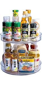 Clear Lazy Susan, 2 Tier Turntable Spice Organizer