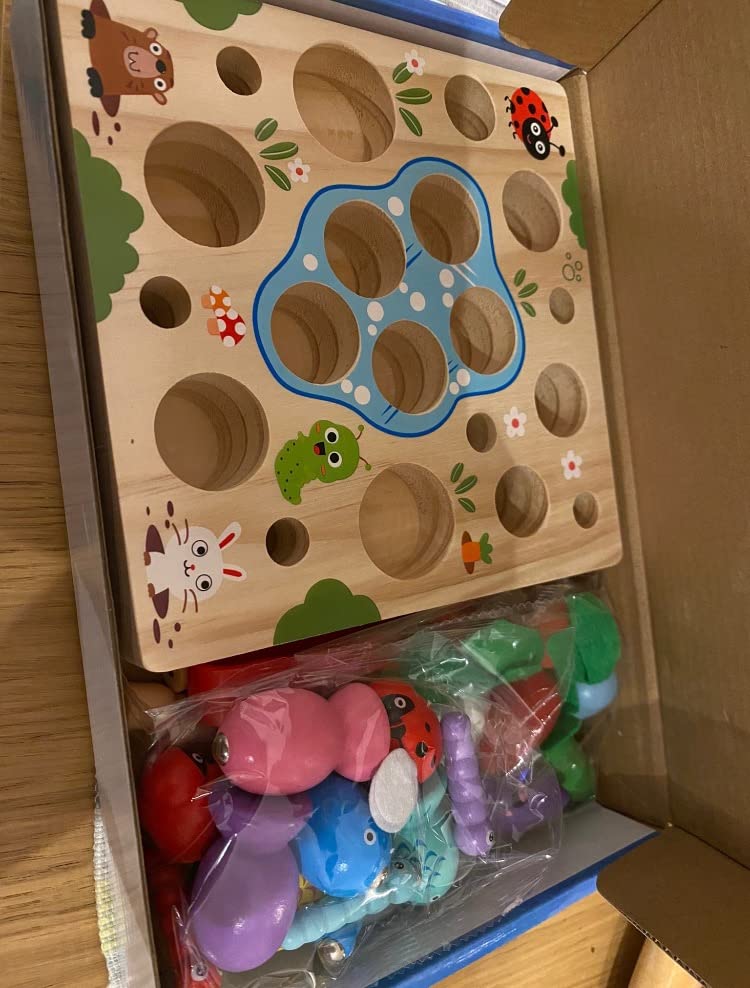 Ottimi gioco consigliato dai 2 anni sotto supervisione di un adulto per allenare la motricit fine. Ottimo regalo per questa fascia d’et. Si pu giocare individualmente o in coppia. Utile anche ad insegnare al bambino a rispettare il proprio turno nel gioco. Materiale resistente, le calamite sono ben attaccate e il legno bello robusto.