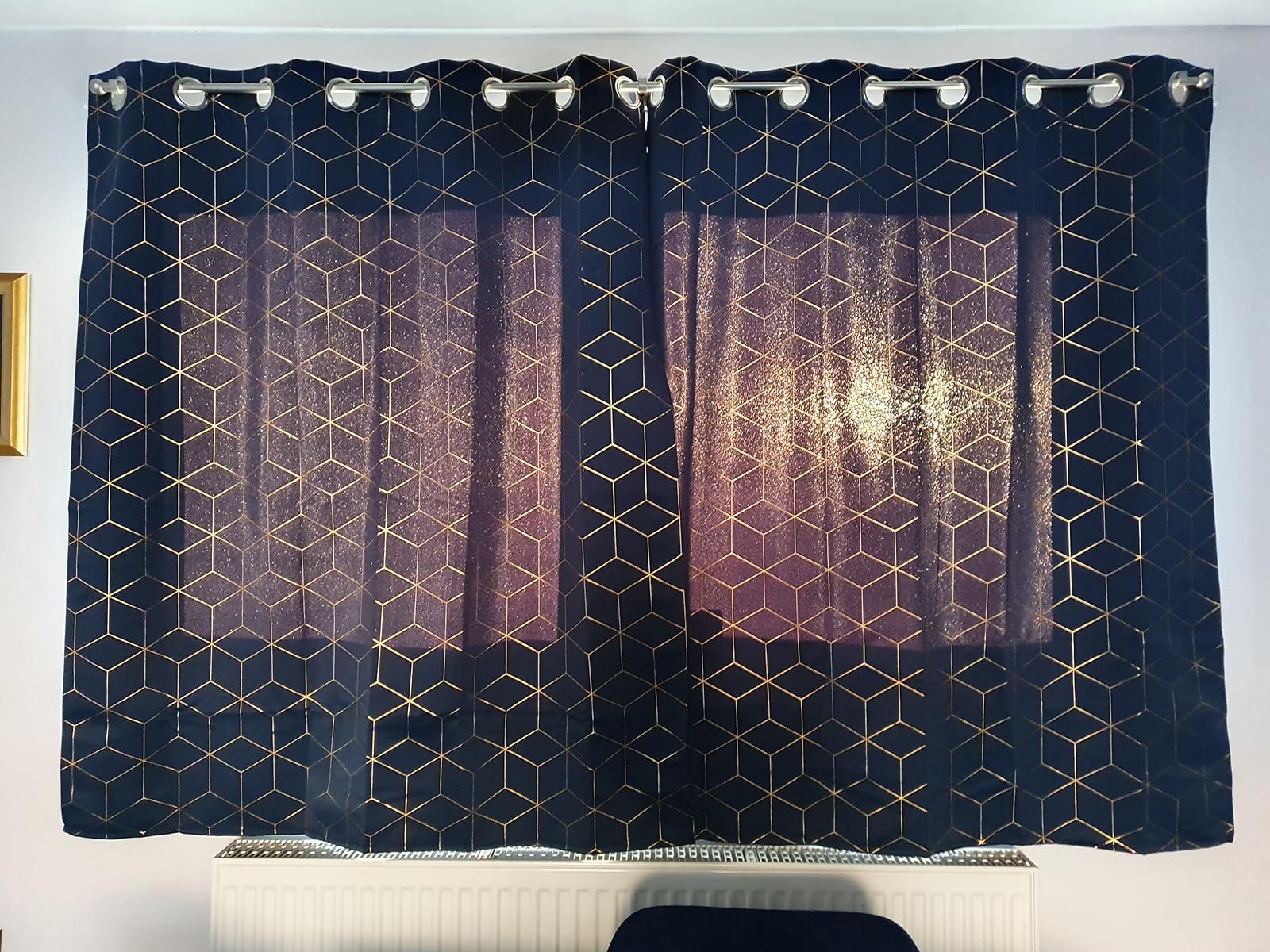 Received different colour / pattern than ordered but desperate for a darkened morning – not at 3am in the far North of Scotland ! Therefore I just put them up anyway. Although it cuts down on light quite well it’s not a total blackout . Thinner compared to previous curtains . Would suggest a blind to use in conjunction with this item . Overall would not buy this again and get from m&s or dunhelm instead where you can see what you are getting for your money .