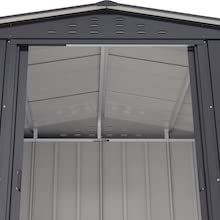 The only issue which will need to be sorted asap is the build up of water on inside on the roof lots of condensation inside the shed water & electric scooters don’t mix well, have been advised to use cans of expanding foam around the internal edges at the top which also to put insulation on the internal walls not really fire retardant which could potentially be an issue with insurance company if there’s a fire. Apart from the condensation. Great looking wood effect metal shed. Definatley good value for money compared to the many other companies price definatley better all in all its good solid long-term storage investment glad I got it my granddaughter really loves it too. Thanks Duramax 10 X 8 Top shed wood effec
