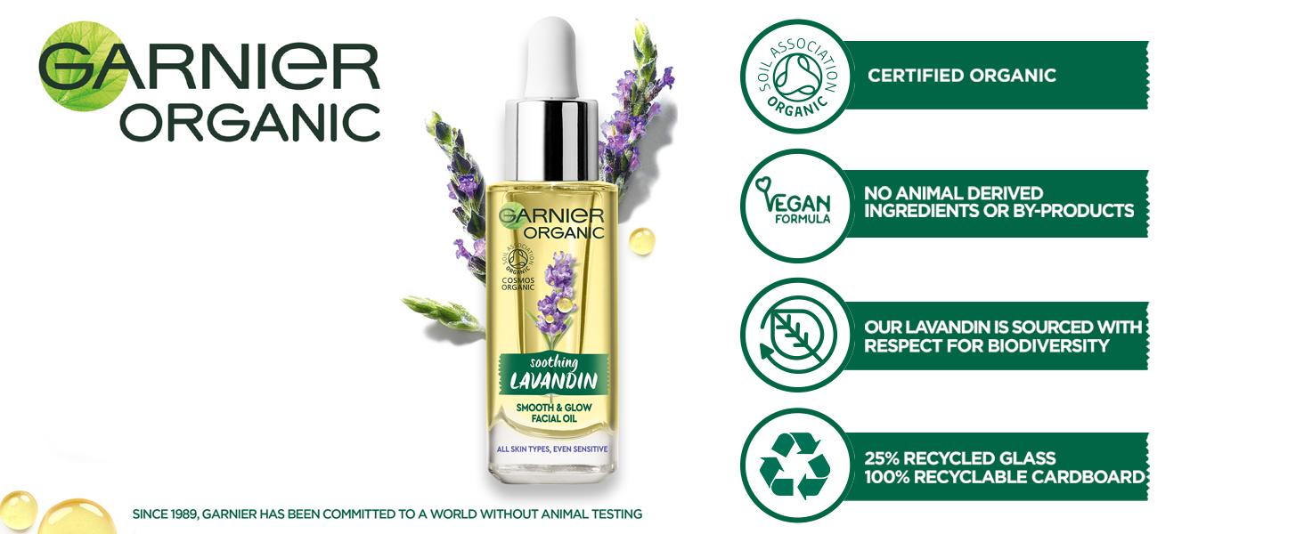 Garnier Organic Lavandin Smooth and Glow Facial Oil is dermatologically tested, suitable for all skin types – even sensitive. It is particularly compatible with ageing skin.