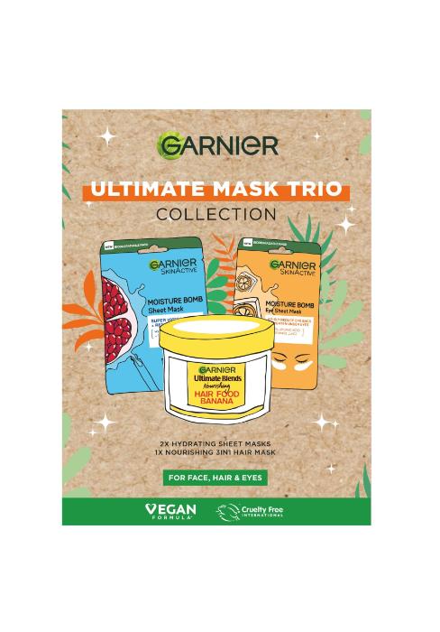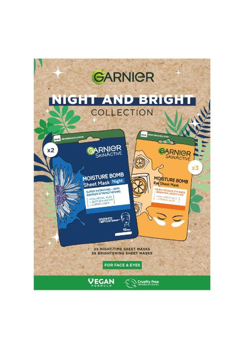 The set contains three Garnier face sheet masks and two eye masks. All cruelty-free, vegan and with plenty of natural ingredients. All enclosed in a 100% recyclable packaging. Ideal as a gift for your loved ones or yourself.