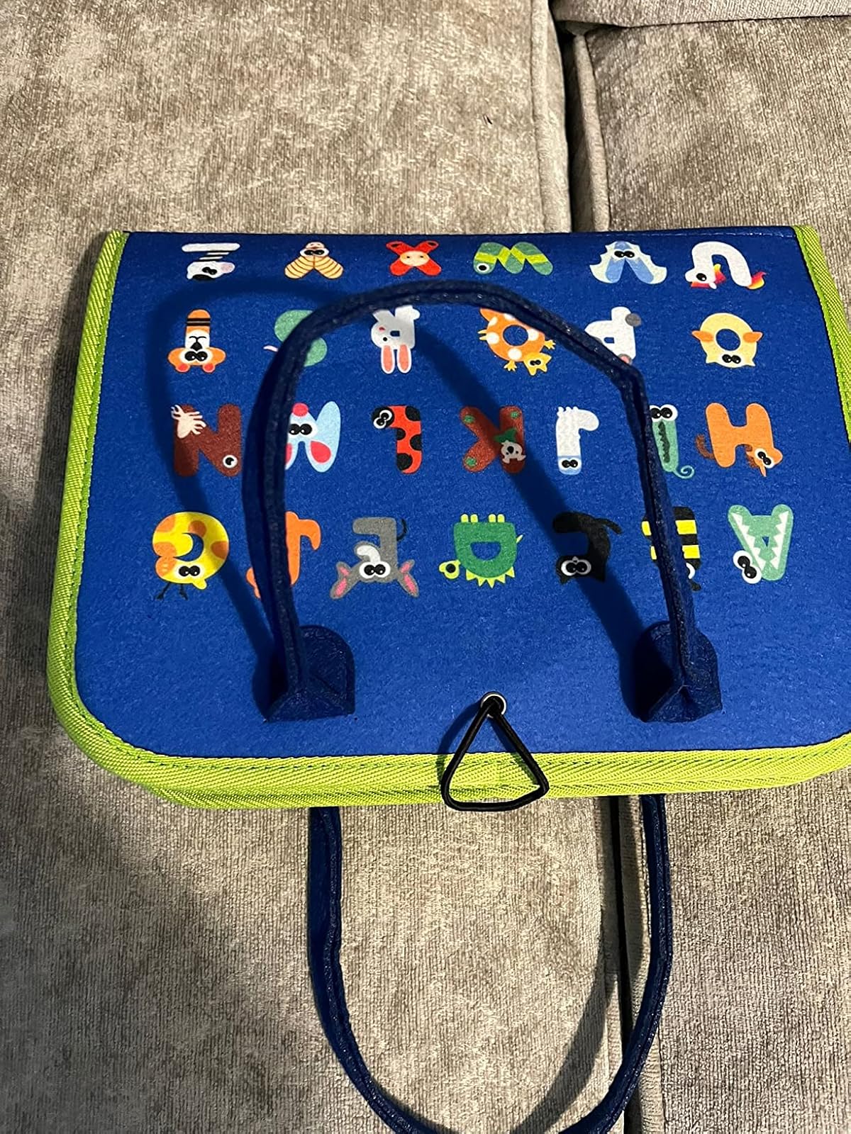 This play is perfect for toddlers to introduce them to shapes, the alphabet, clock and days of the week. It is very soft and I would deem as safer compared to other toys. The bag is made of good quality fabric and shouldn’t tear easily. The price is a little steep but is as described and can be interactive!