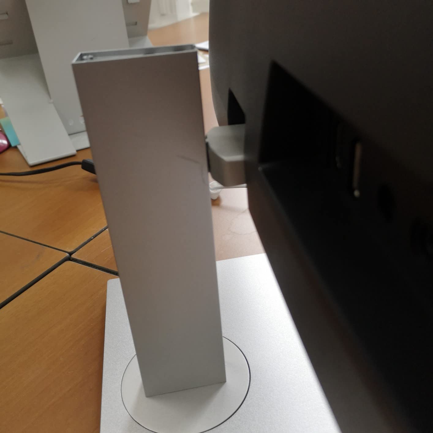 The only DOWNSIDE is the HEIGHT which is not optimal both for me and my partner (I’m quite tall, she’s “not tall”). When in perfectly vertical position, the lower edge is ~8cm far from the desk and the upper edge is ~38cm far from the desk. Buying a third-part stand is not easy because the monitor is NOT COMPATIBLE with the VESA standard.
