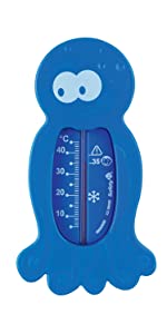 This thermometer is in the shape of an octopus and can also be used as a toy for your child to play with.