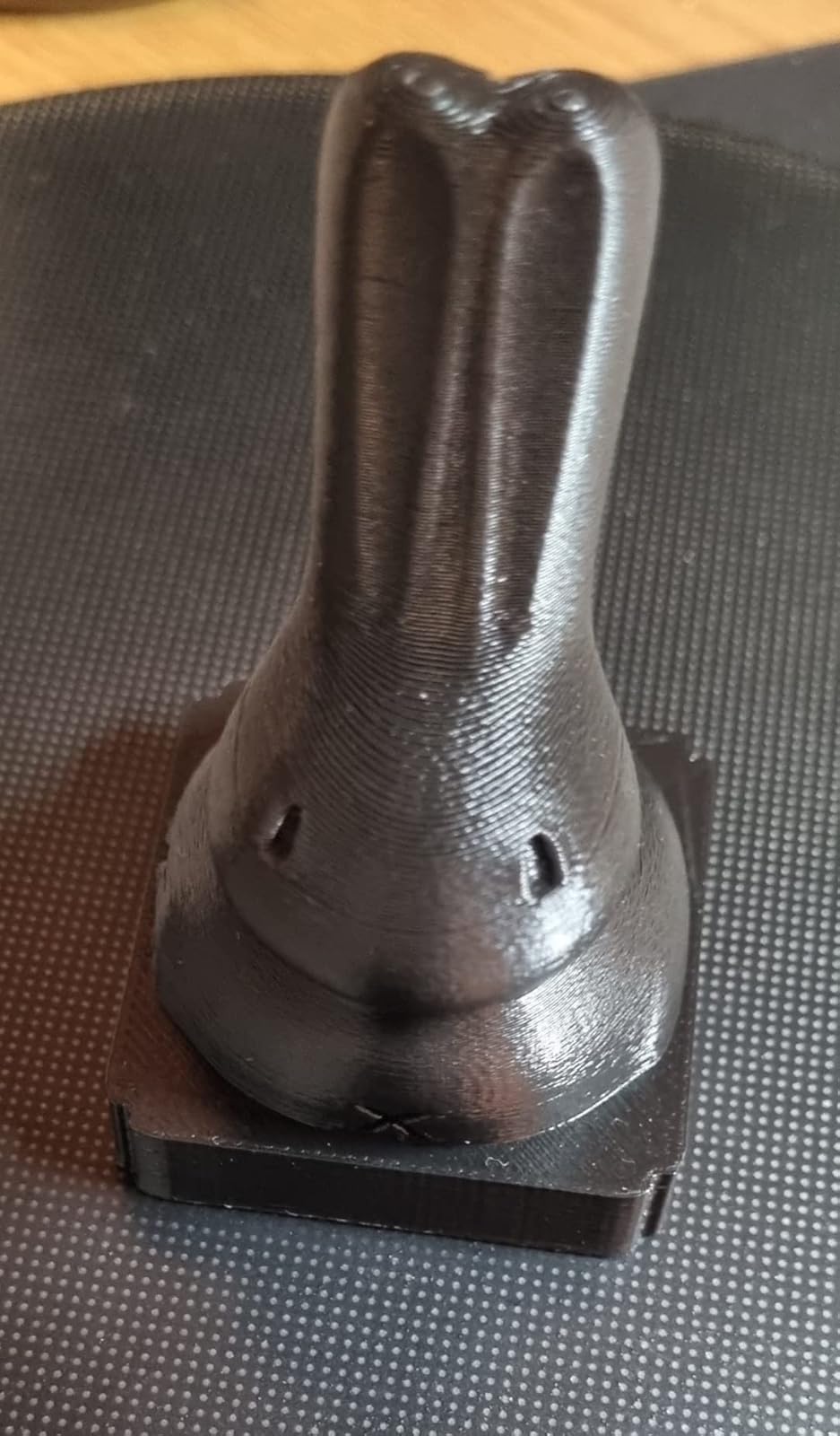 I then ran a print using an old job stored on the printer. I have a little bunny rabbit print that I use as a benchmark, mostly because my youngest likes to get a new bunny rabbit when Daddy gets some new PLA but also because the model is tough enough to print that it challenges the printer but easy enough that I won’t get stuck in an infinite loop of troubleshooting that doesn’t matter because I never print anything that is insanely complicated or at the limits of 3D printing. I intentionally spend time making sure anything I print is oriented in a way that makes it easier or I modify it to make it less challenging.
