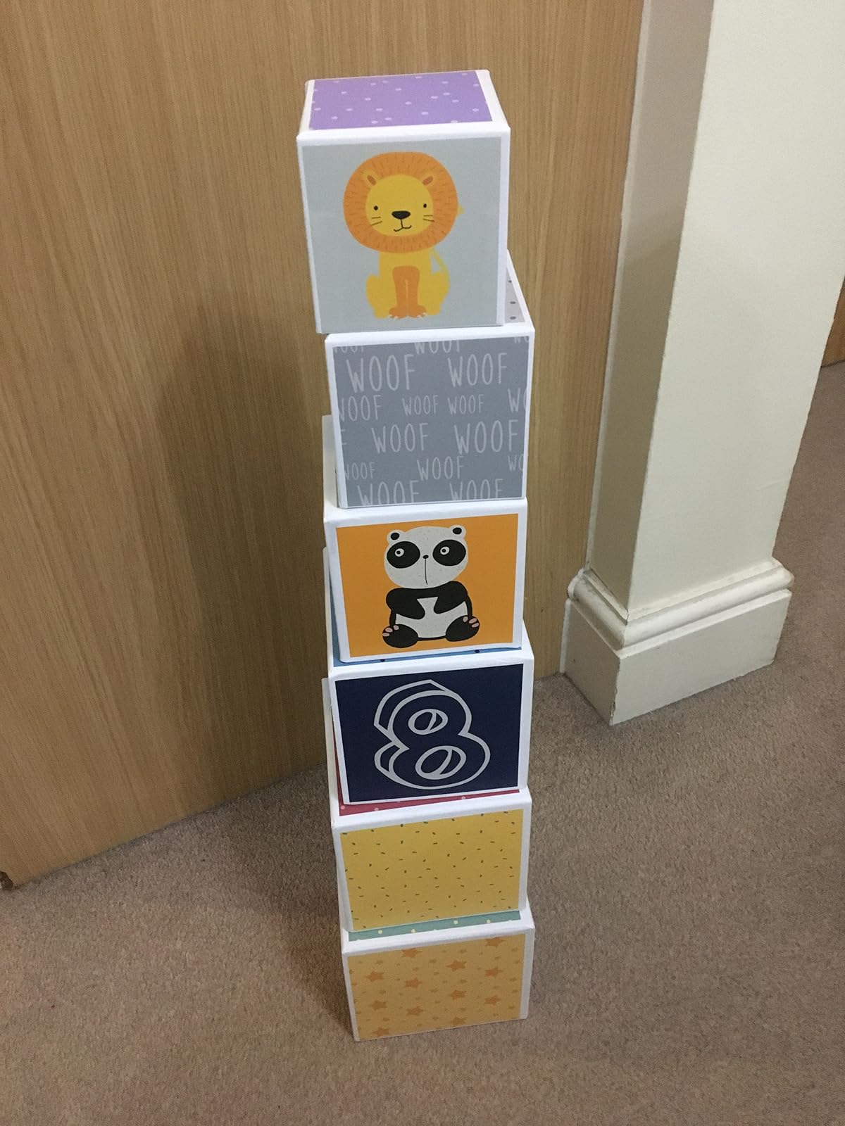 Was surprised that the blocks were cardboard (didn’t read description adequately).