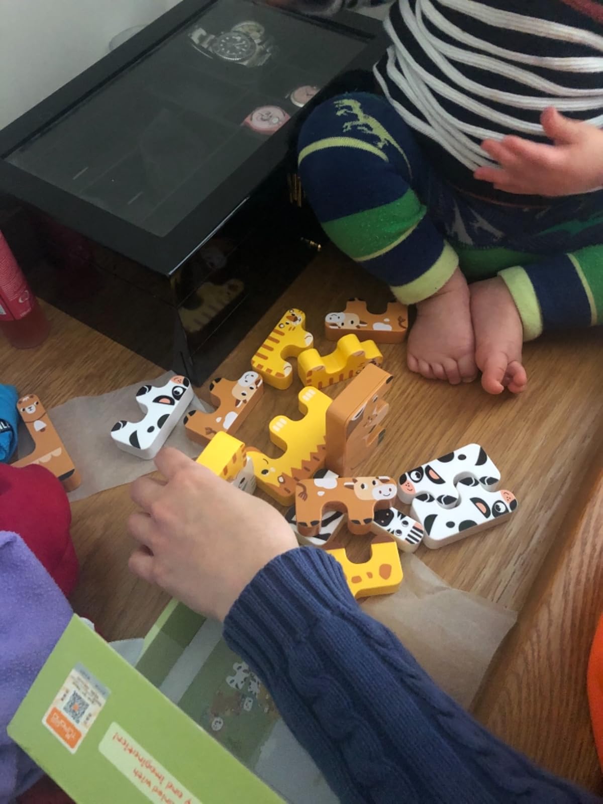 Mi hija de 2 aos y medio es una super fan de puzzles, encajables, apilables y etc…as que este estaba claro que sera todo un acierto y as fue, pero lo ha aburrido pronto al tener tan poquitas, como comienzo est bien, pero si al nene le gusta mejor que cojas alguno ms para completar y poder hacer cosas ms grandes.