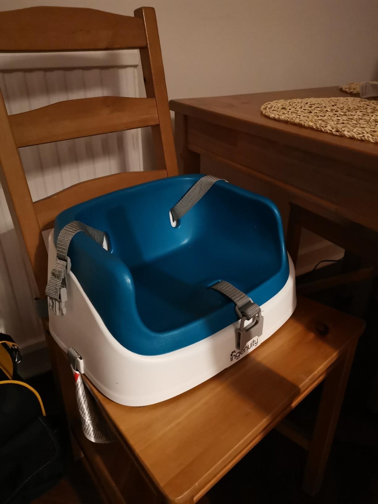 I bought this booster chair for nearly 2 year old after seeing it at a friends house. It feels sturdy, can be clipped securely to a chair and means that my girl can now sit up at the table for eating or for activities like colouring/play doh. I don’t know why I didn’t get one sooner.