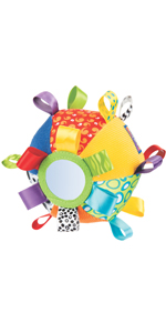 Bought for my newborn baby girl at Christmas time. This is still her favourite toy! She is now only 3 months old and loves all the sensory features on this toy and is always grabbing/ cuddling the toy close to her. Great for taking out and about too as easily attaches to pram.